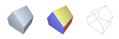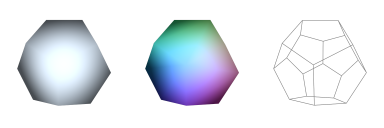 For platonics composed of elements other than triangles (i.e. the hexahedron and dodecahedron) the geosphere function applies a preliminary mid-point insertion step followed by a ring triangulation for each regular polygon to facilitate subsequent refinement. Related Symbols:See Also: sphere, c-sphere, icosphere, octasphere, tetrasphere