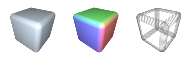// returns a unit-size rbox with a rounding radius of 0.25 units applied to its corners - with 4 discretisation steps per corner