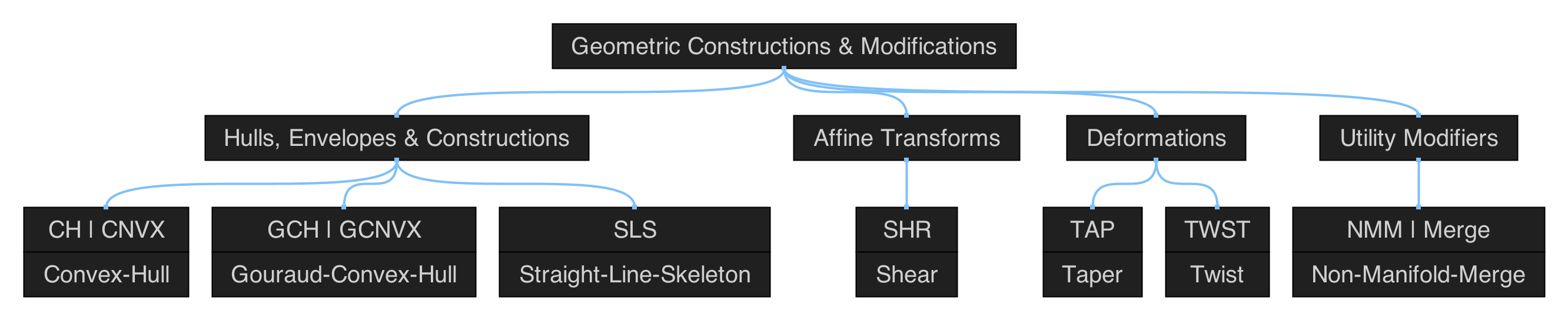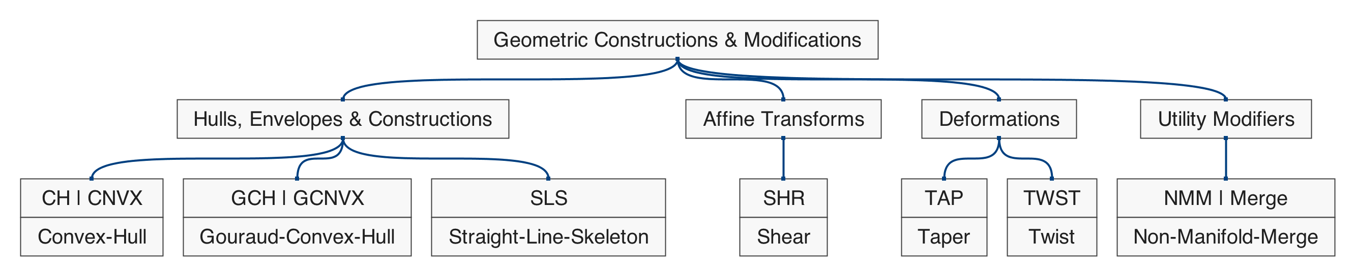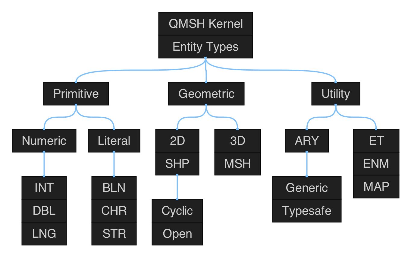 Figure 5.1: hierarchical map of the set of functions in qmsh for creating abstract polygonal shapes.