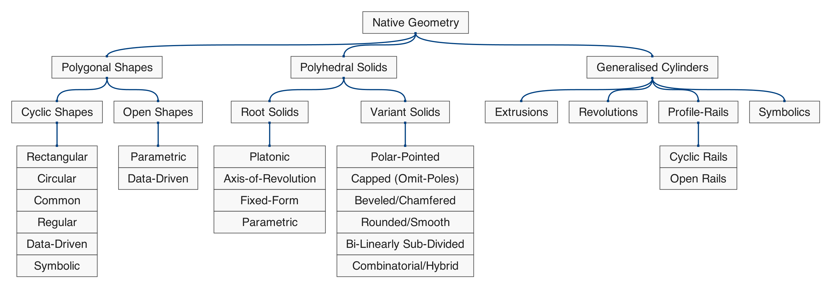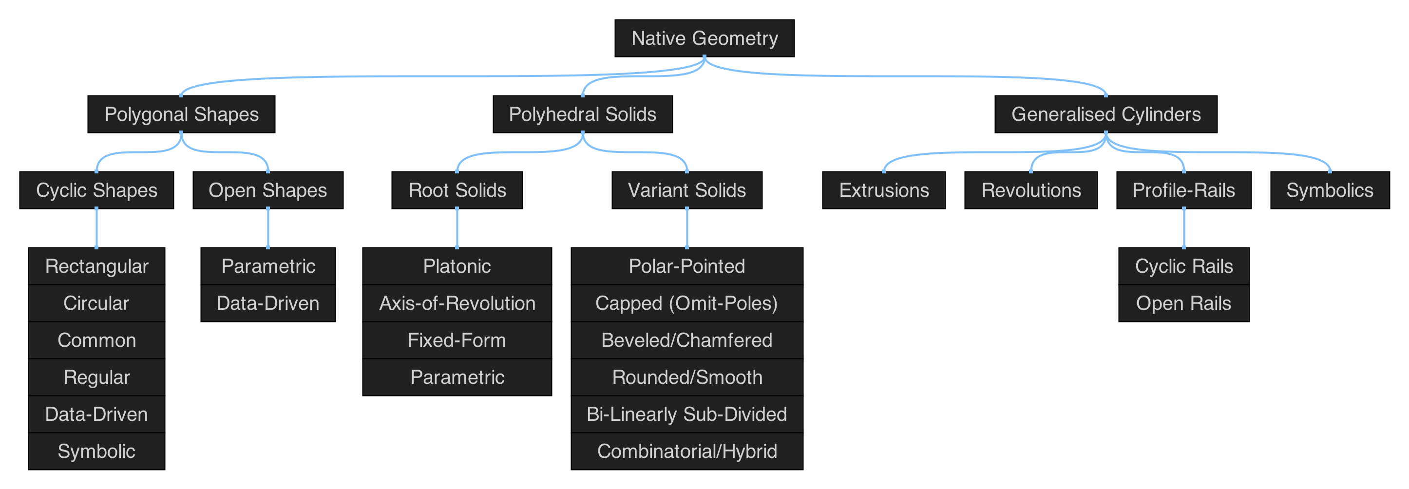 The geosphere offers a greater level of control over the number and type of polyhedral-elements that are emitted relative to the named counterparts: icosphere, octasphere and tetrasphere. In-particular the geosphere supports construction of hexahedral and dodecahedral geodesics using the type-keys 'H' and 'D' and the construction of odd-parity/odd-frequency partitions alongside even-parity/even-frequency partitions - by virtue of applying the frequency-based division to each platonic in a single pass rather than in an iterative or recursive manner. When coupled with the ability to alter the underlying platonic-primitive dynamically - this renders the geosphere a far more expressive and versatile function when compared to the icosphere, octasphere and tetrasphere. However bear in mind that the geosphere does not expose support for disabling true geodesic spherical-projection behaviour which the aforementioned counterparts each do support.•